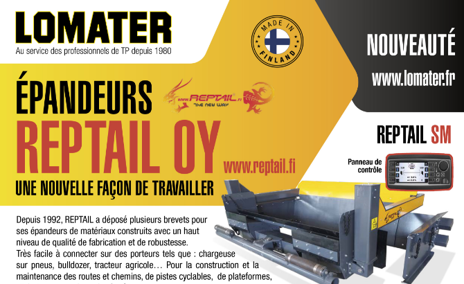 Créé en 1980 à Lamarche pour la location de matériel de terrassement, d'où son nom, et la vente d'occasion, Lomater, désormais basé à Damblain (88), est aujourd'hui le revendeur exclusif pour la France de la marque innovante et écologique du flnlandais REPTAIL.